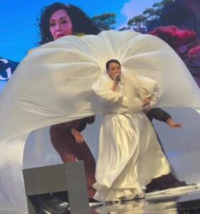 “Sebenarnya, saya mengenakan baju yang besar dan berat menyebabkan saya hilang imbangan ketika berjalan menuju ke belakang pentas sebaik membuat persembahan.